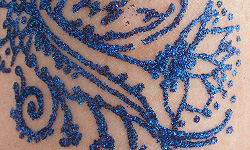 | Becoming Moonlight® Gilding Paste is a latex-free medical adhesive that has been adapted specifically for henna artists. Sprinkle Becoming Moonlight® Glitter over Becoming Moonlight® Gilding Paste and watch the stars come out! This is dazzling waterproof body art that lasts three to seven days depending on care. Becoming Moonlight® Glitter is a cosmetic quality polyester glitter. Becoming Moonlight® Glitter comes in 5g and 12g gram shaker jars with screw-down lids to minimize visits from the "messy fairy" in your henna drawer, and accidental "sparkle dumps" on your clients! You can do similar work with Pros-Aide® Cream Adhesive, but that more difficult to work with, because it becomes transparent when it dries. It is adapted for medical prosthetics, not for body art. Click HERE to learn the difference between the two. | ![]() |